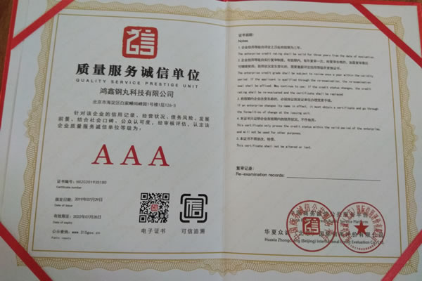公司所有產(chǎn)品均通過ISO9001 **質(zhì)量認(rèn)證,2014年更獲得了第三屆中國(guó)金屬磨料行業(yè)具有影響力品牌-華尊獎(jiǎng)